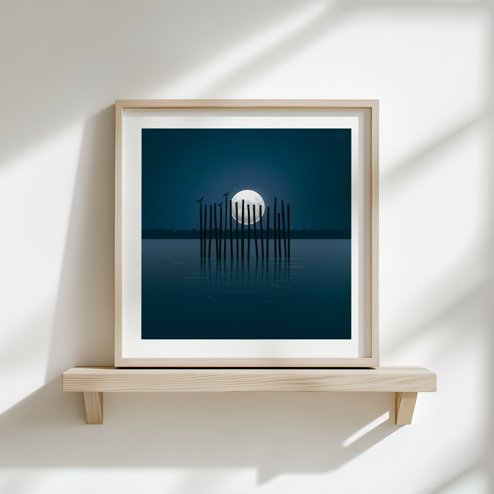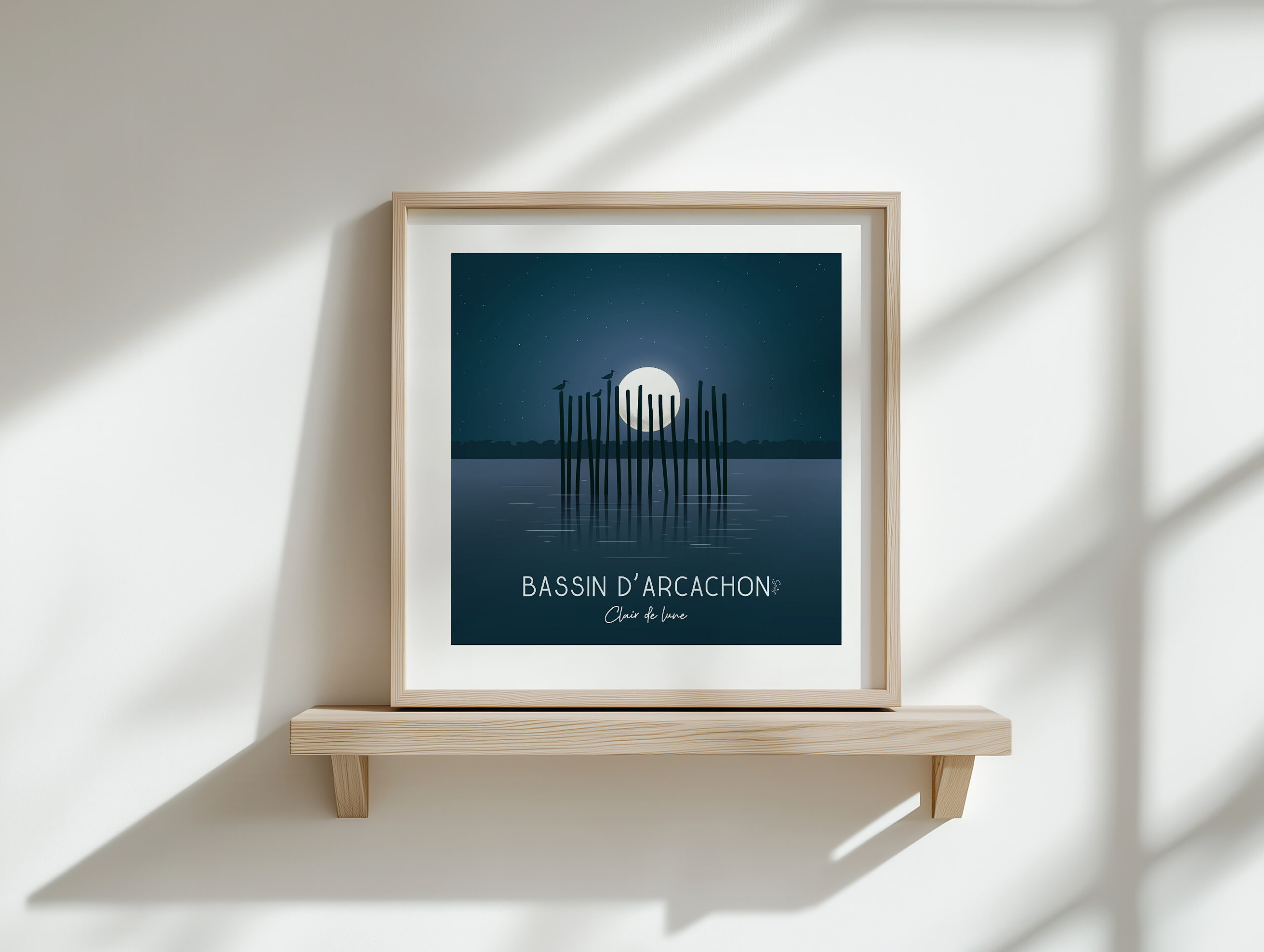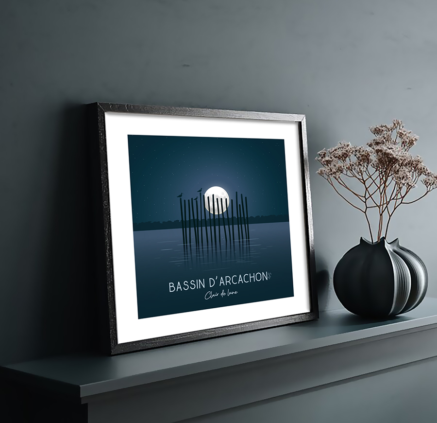 L’illustration Bassin d’Arcachon au clair de lune est disponible en 2 versions :