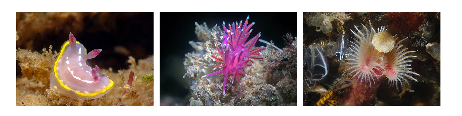 J’ai dû mal à croire que ces images viennent du fond du Bassin d’Arcachon et pourtant c’est vrai. Les photographies de Frédéric sont plus incroyables les unes que les autres. Nudibranches, vers marins, anémones et ce fameux crabe qui m’a hypnotisé… j’en prends plein les yeux.